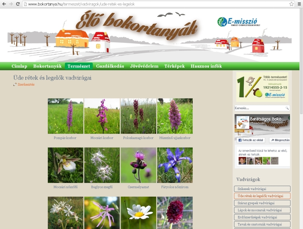 A bokortanyás térség vadvirágos rétjein 5 őshonos orchideafaj (pompás kosbor, mocsári kosbor, mocsári nőszőfű, hússzínű ujjaskosbor, poloskaszagú kosbor) fordul elő, de egyikük (a poloskaszagú kosbor) pár éve egy építkezés miatt alighanem kipusztult.